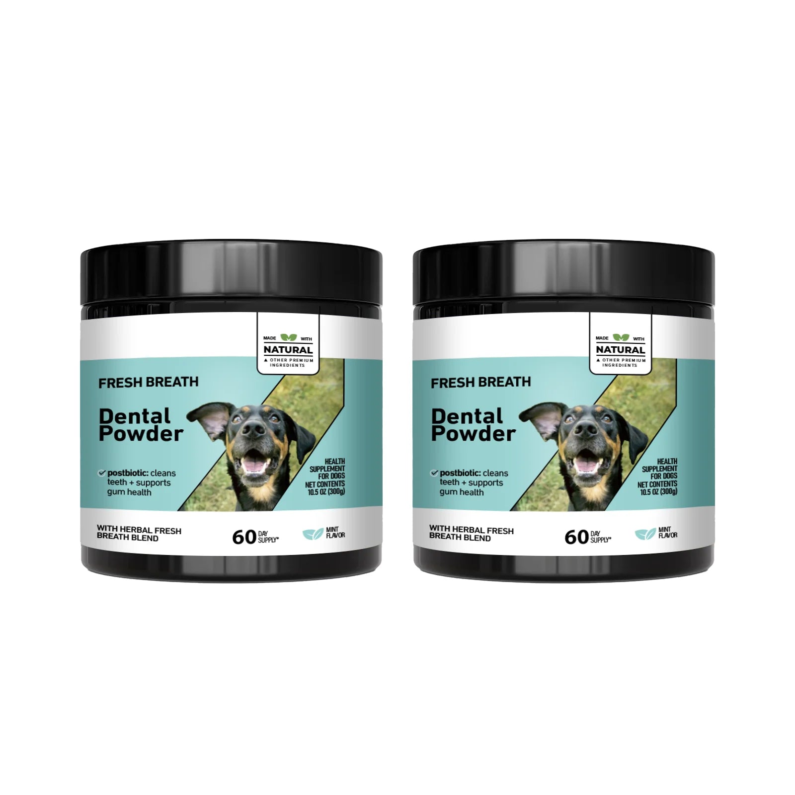 Natural Dog Cat Dental Care Powder - Mint flavored teeth cleaning formula freshens breath & prevents tartar formation for pets.